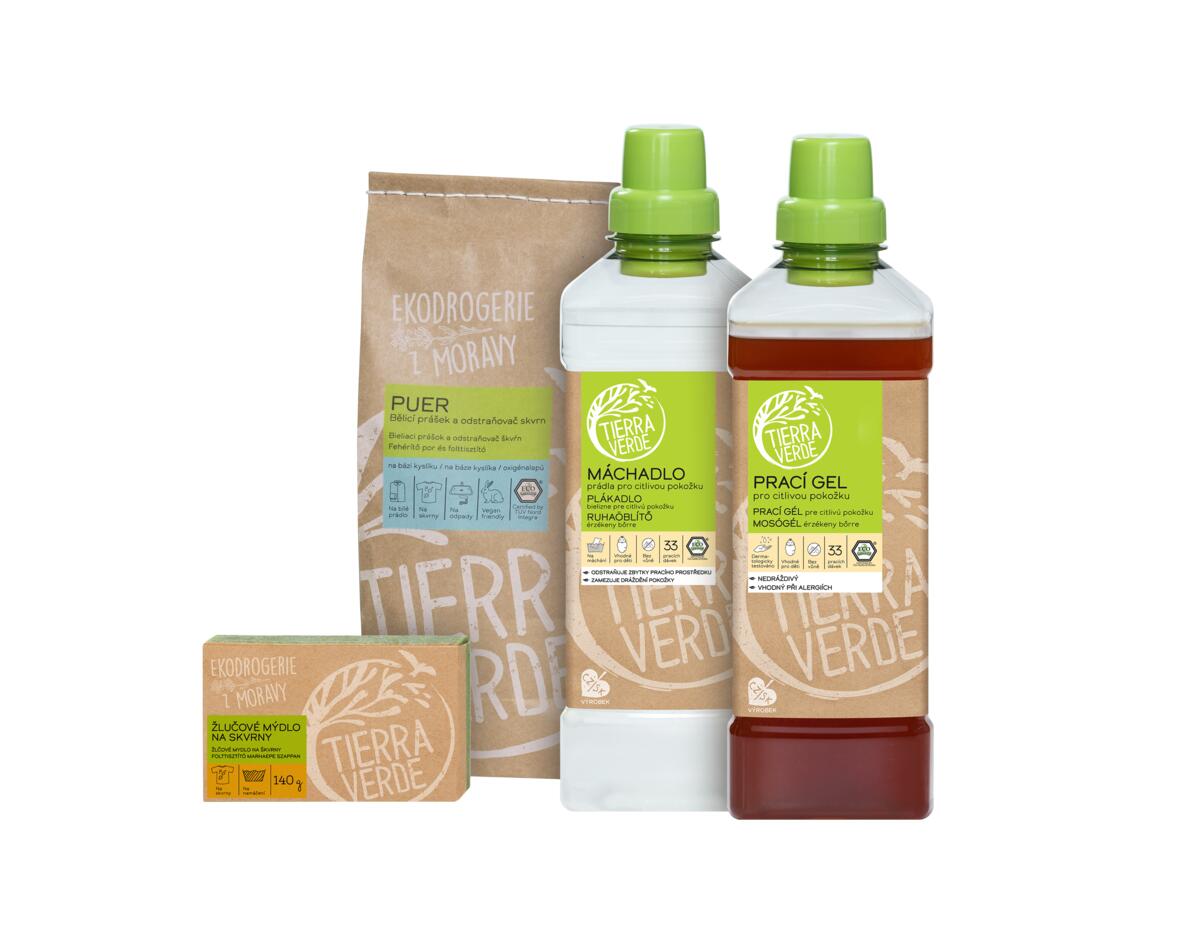 - Mosógél érzékeny bőrre (1× 1 l flakon)– gyengéd mosószer csecsemők, gyermekek és érzékeny bőrű felnőttek színes ruháinak mosásához. Természetes összetétel, parfümök és allergének nélkül.